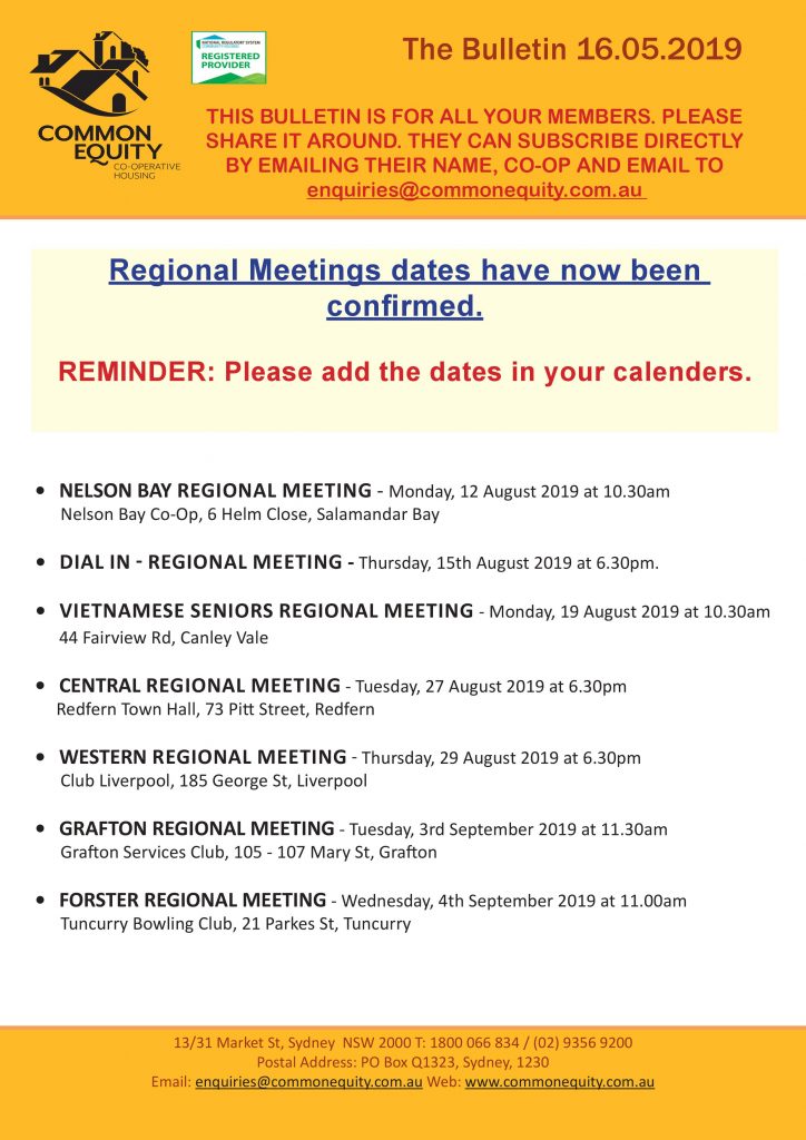 In this issue: – Upcoming Regional Meeting dates – NSW Co-Op Conference and details – Key contacts at Common Equity Read Now…